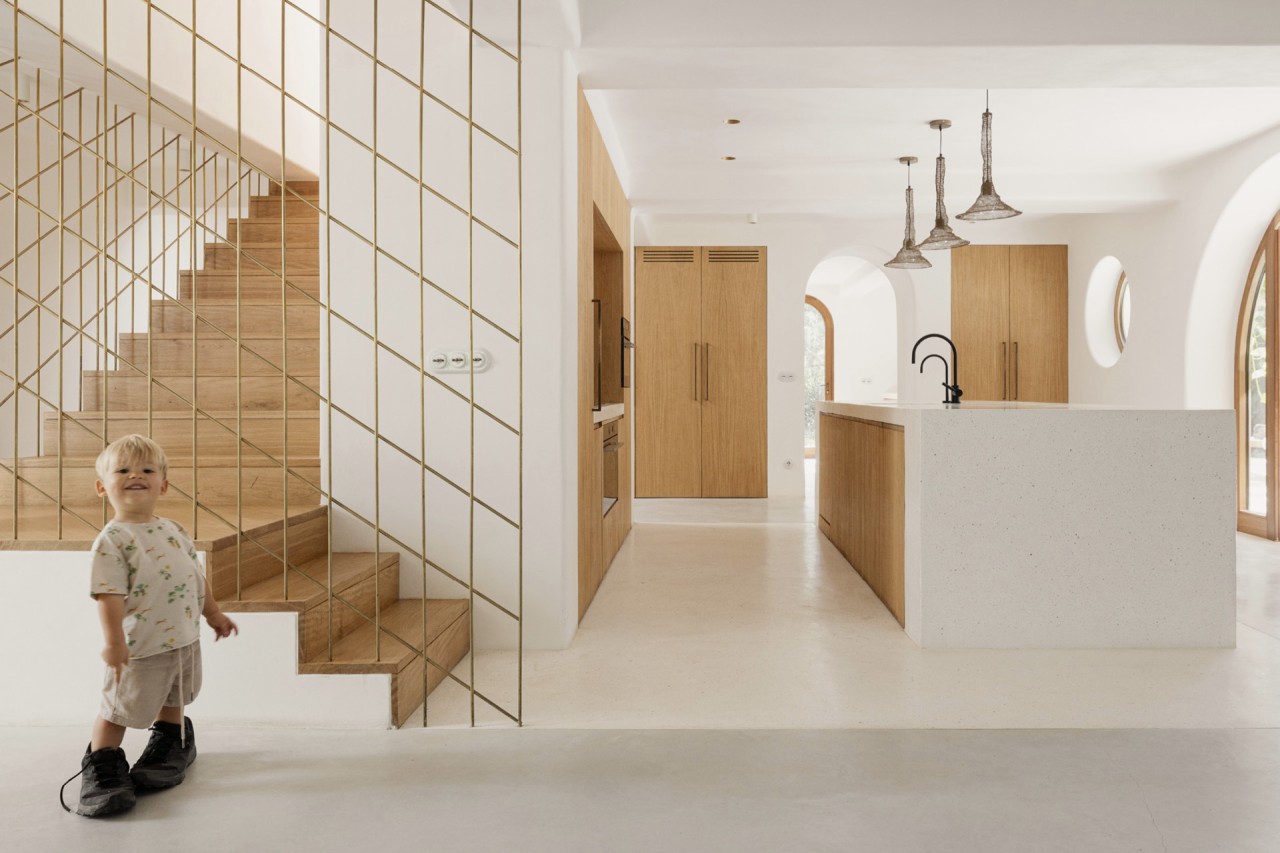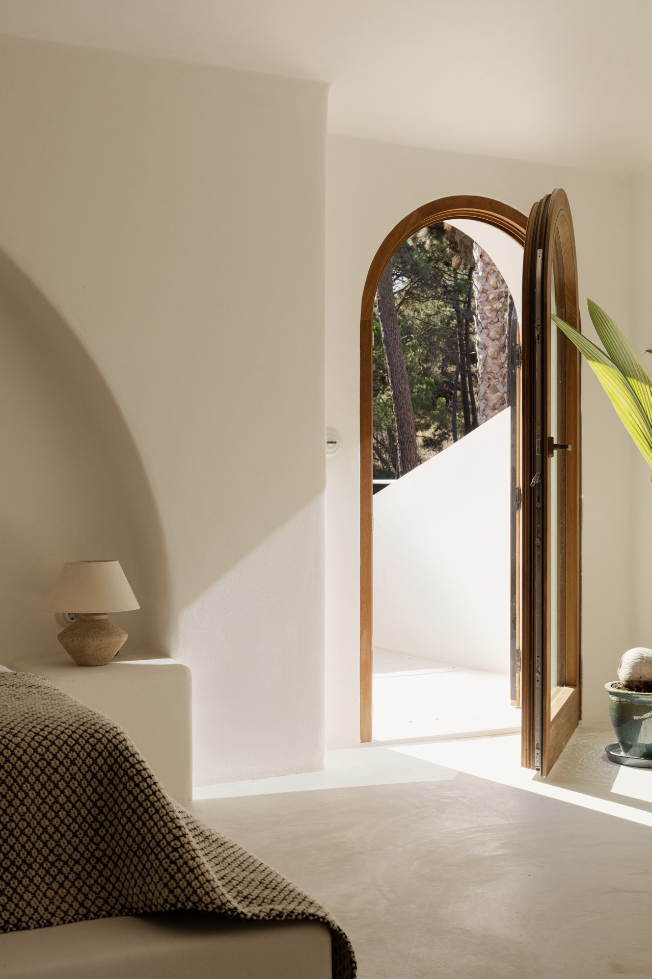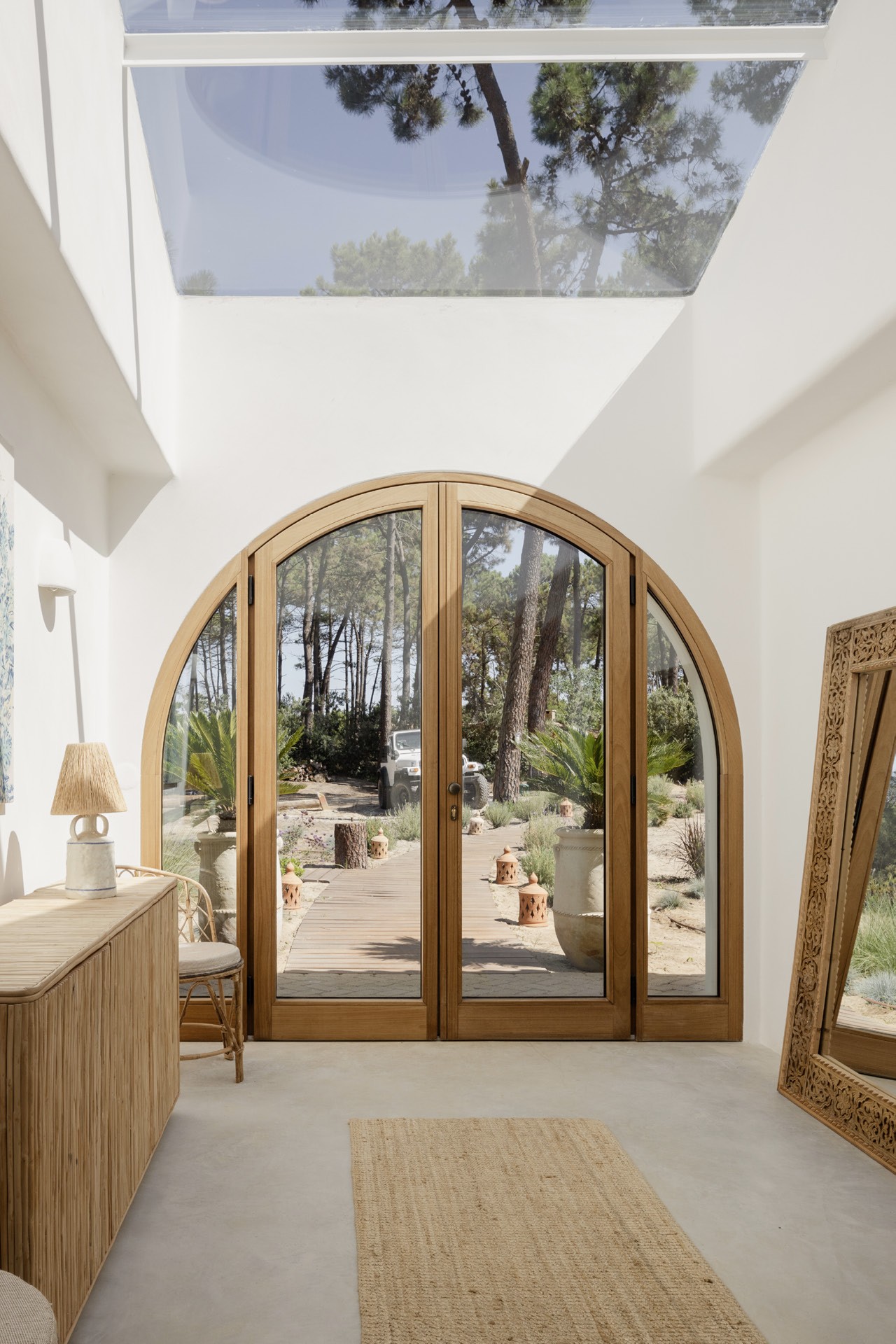 La maison est réorganisée autour d’un grand cœur ouvert, traversant et naturellement ventilé, qui concentre les pièces de vie principales et s’ouvre sur la pinède environnante grâce à de grandes baies cintrées, rappelant celles du jardin d’hiver existant. En périphérie de ce cœur vivant et central, se déploient plusieurs espaces nuit, isolés du bruit.