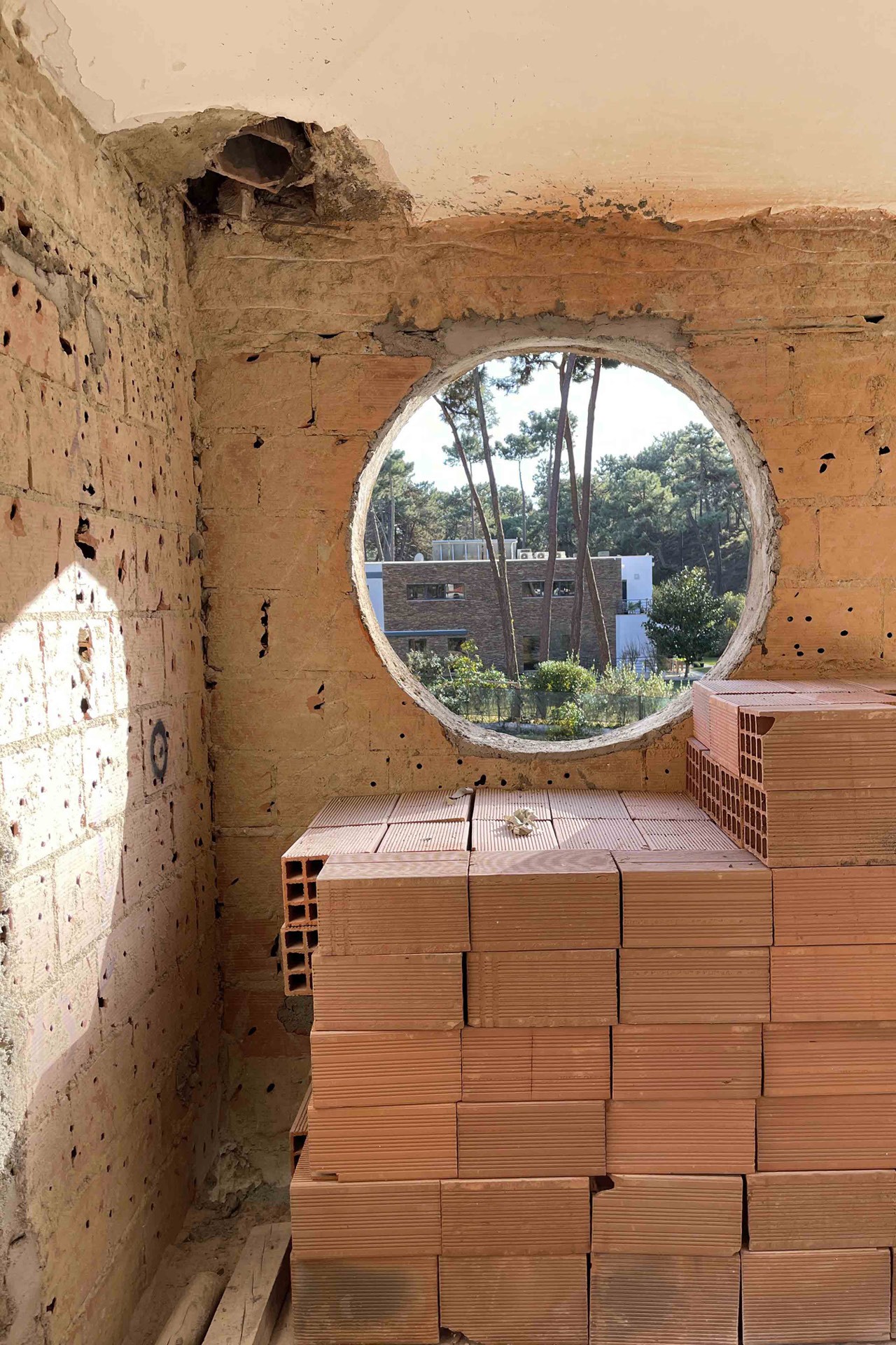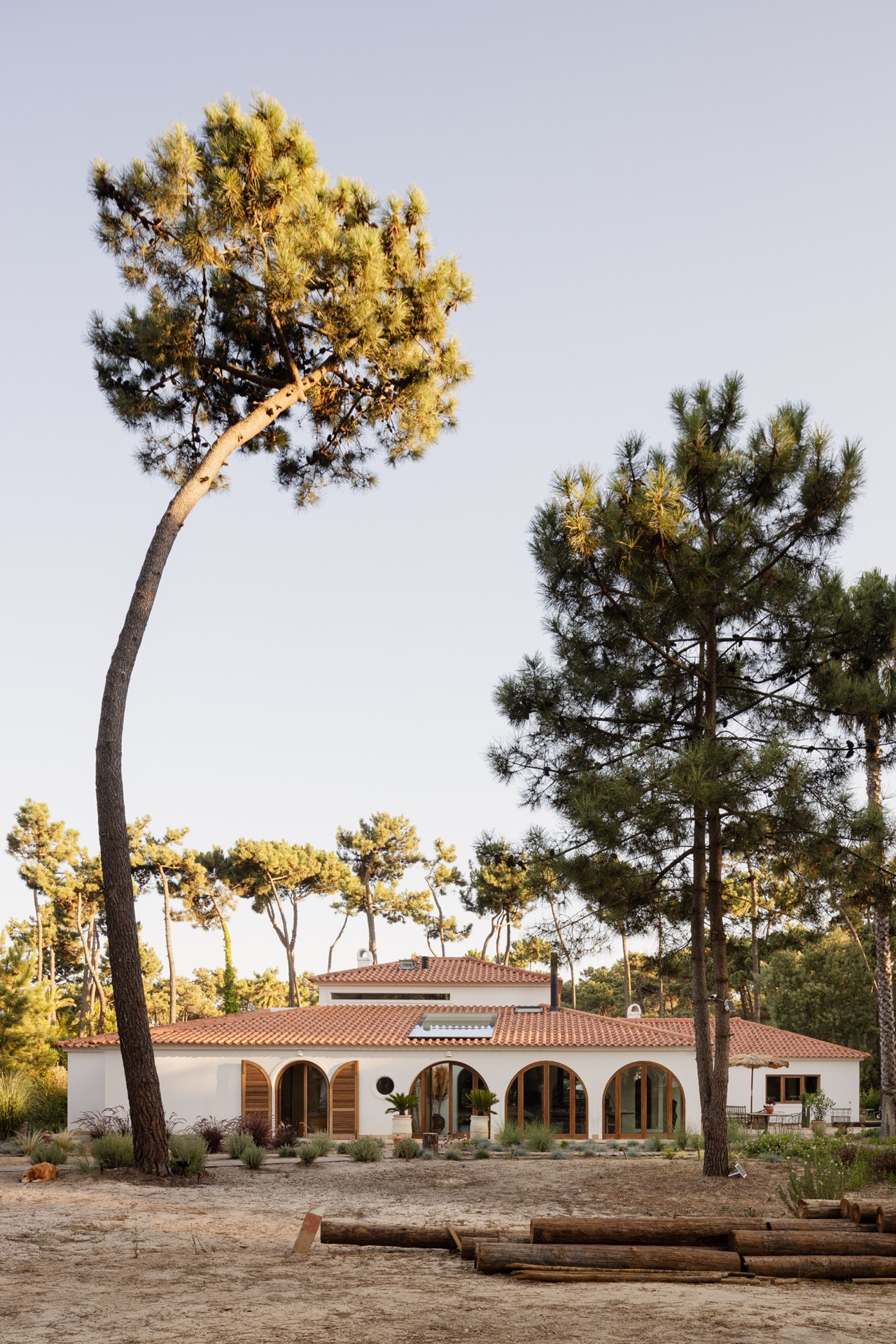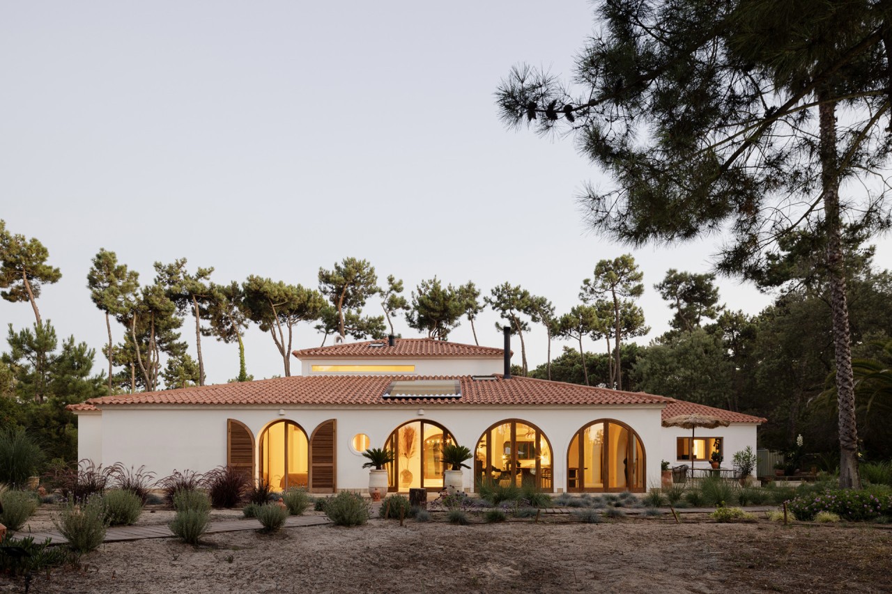 Située à quelques kilomètres au sud de Lisbonne, à la lisière d’une pinède classée réserve naturelle et à proximité de l’océan Atlantique, cette maison des années 1970 était initialement destinée à être démolie. Cependant, les premières esquisses ont révélé la possibilité de conserver la structure poteaux-poutres et la toiture, tout en réinventant la relation au paysage. Cette approche a été retenue : la maison existante, aux espaces autrefois étriqués, a été libérée de ses murs en briques creuses pour se transformer en un vaste espace animé, où l’ossature d’origine devient un cadre propice à la création d’espaces poétiques et singuliers.