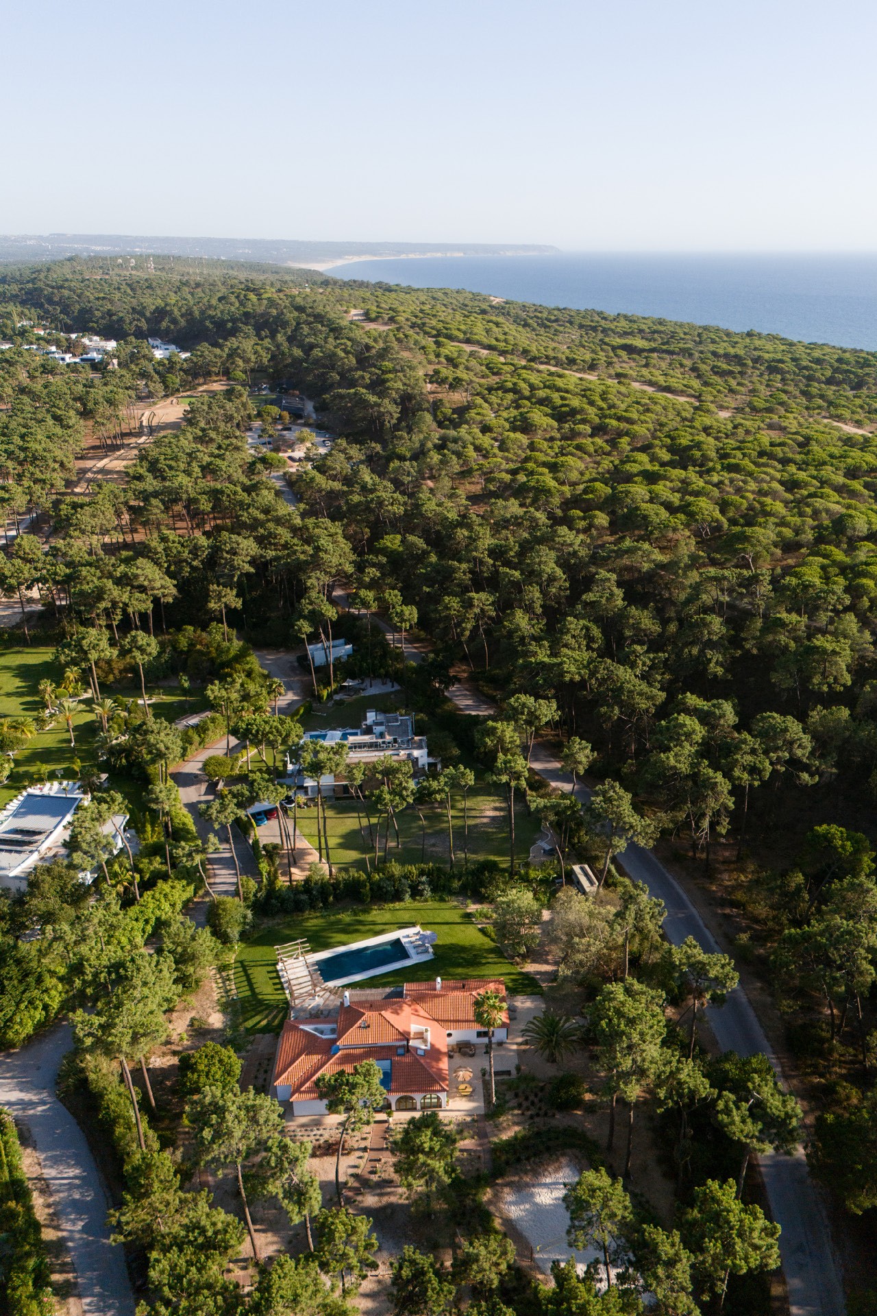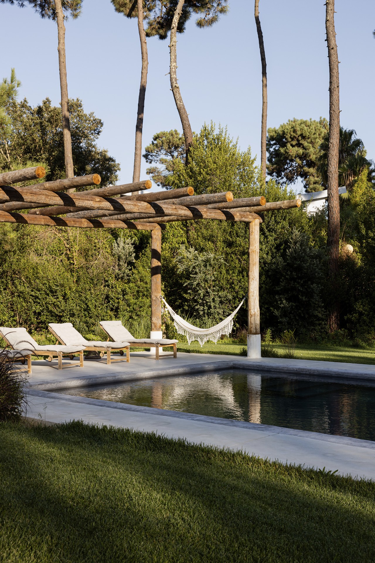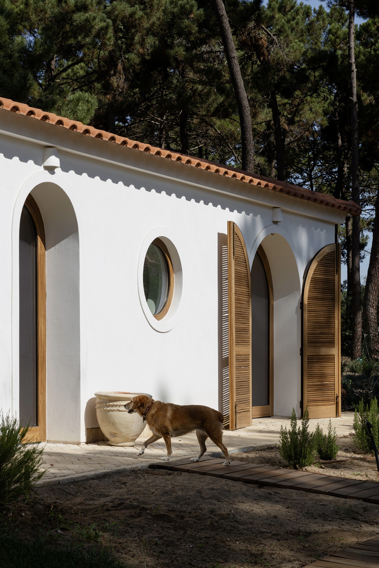 Située à quelques kilomètres au sud de Lisbonne, à la lisière d’une pinède classée réserve naturelle et à proximité de l’océan Atlantique, cette maison des années 1970 était initialement destinée à être démolie. Cependant, les premières esquisses ont révélé la possibilité de conserver la structure poteaux-poutres et la toiture, tout en réinventant la relation au paysage. Cette approche a été retenue : la maison existante, aux espaces autrefois étriqués, a été libérée de ses murs en briques creuses pour se transformer en un vaste espace animé, où l’ossature d’origine devient un cadre propice à la création d’espaces poétiques et singuliers.