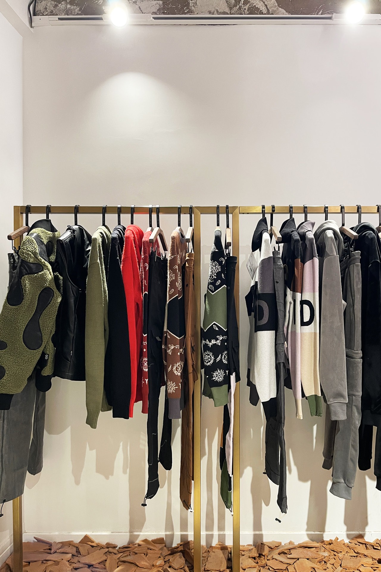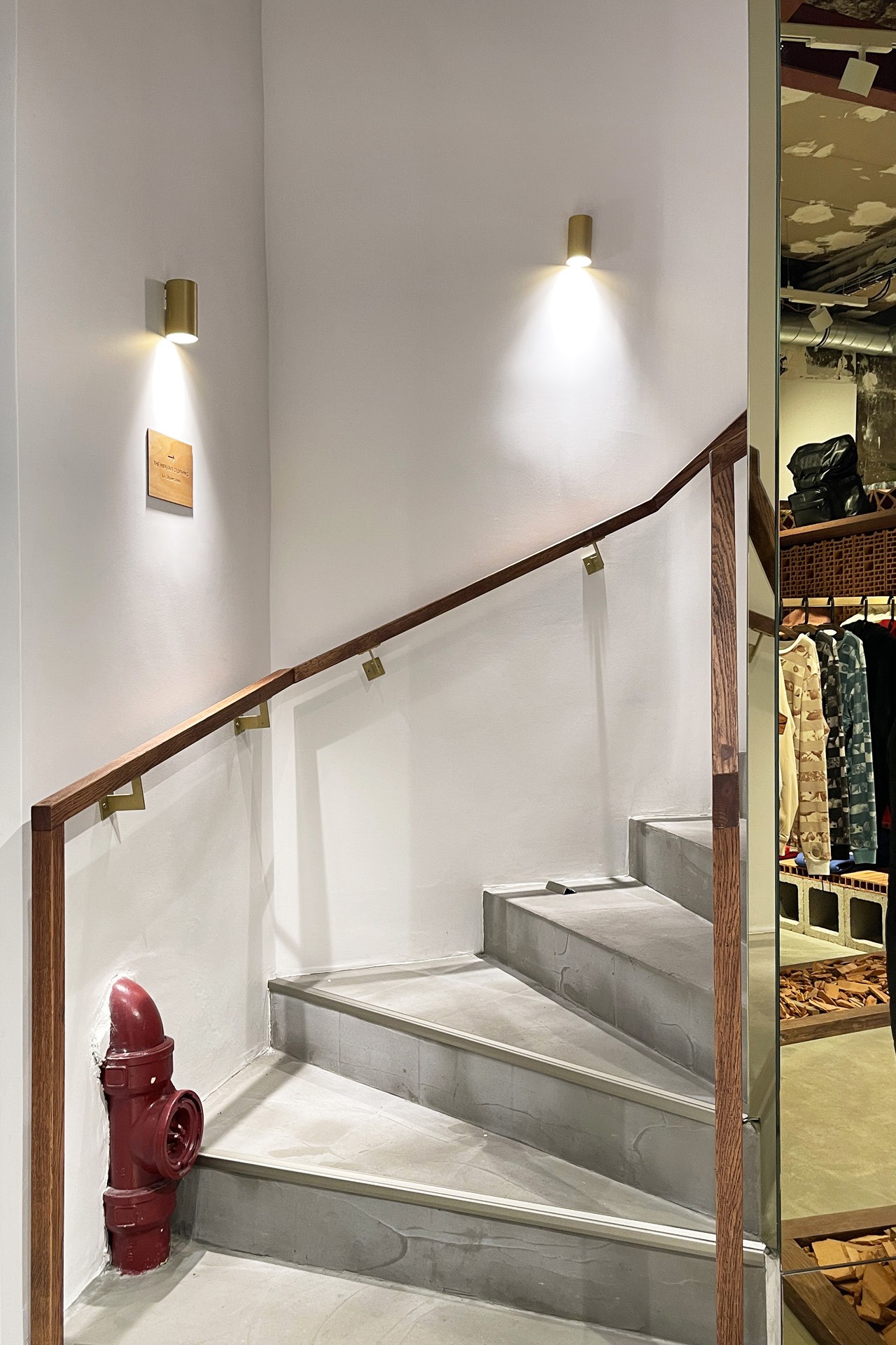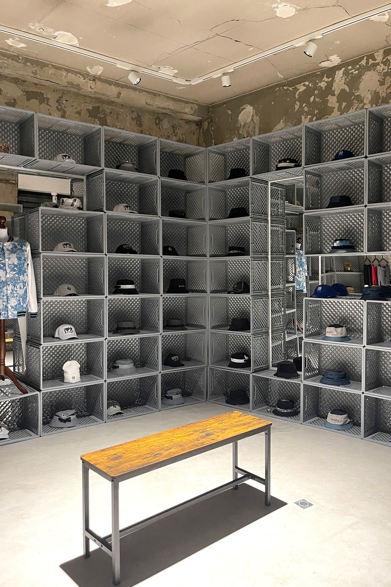 Fusion de l’univers du Street wear et de la Haute Couture, le flagship store offre une expérience immersive où la rudesse de la « street » rencontre le raffinement de la capitale de la mode par la confrontation de matériaux de récupération, bruts et grossiers, et de portants sophistiqués.