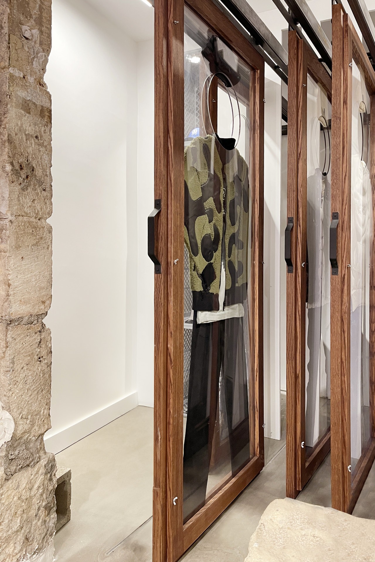Inspiré de la haute couture, le flagship store est le fruit d’un travail sur-mesure et artisanal qui participe à la création d’un lieu unique qui incarne l’univers du Créateur et sa folie créative. Le mobilier est soigneusement retapissé à l’image de la marque, les portants sont réinventés avec l’aide du savoir-faire des menuisiers, des revêtements muraux sont improvisés à partir des collections passées, donnant une seconde vie aux délaissés.