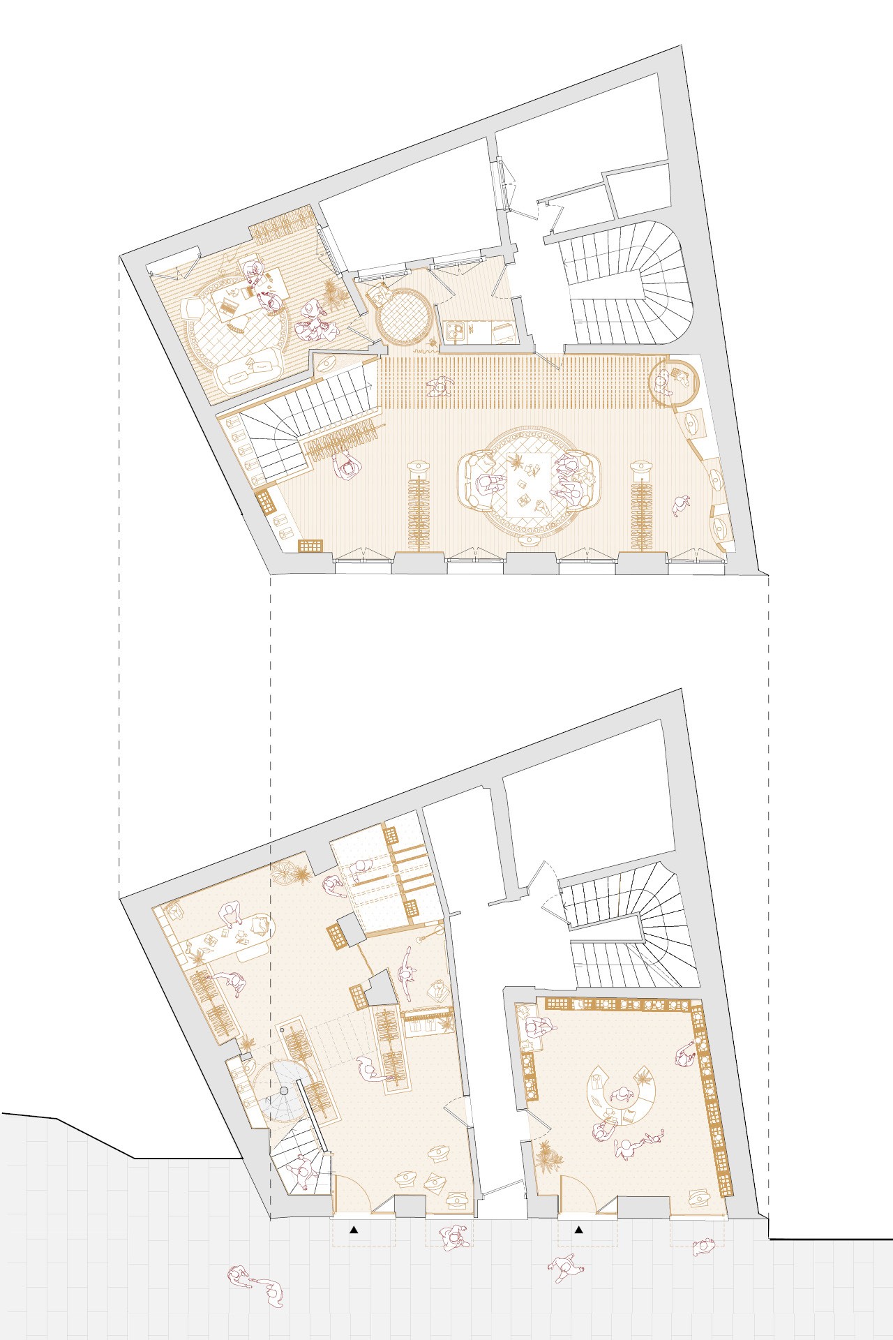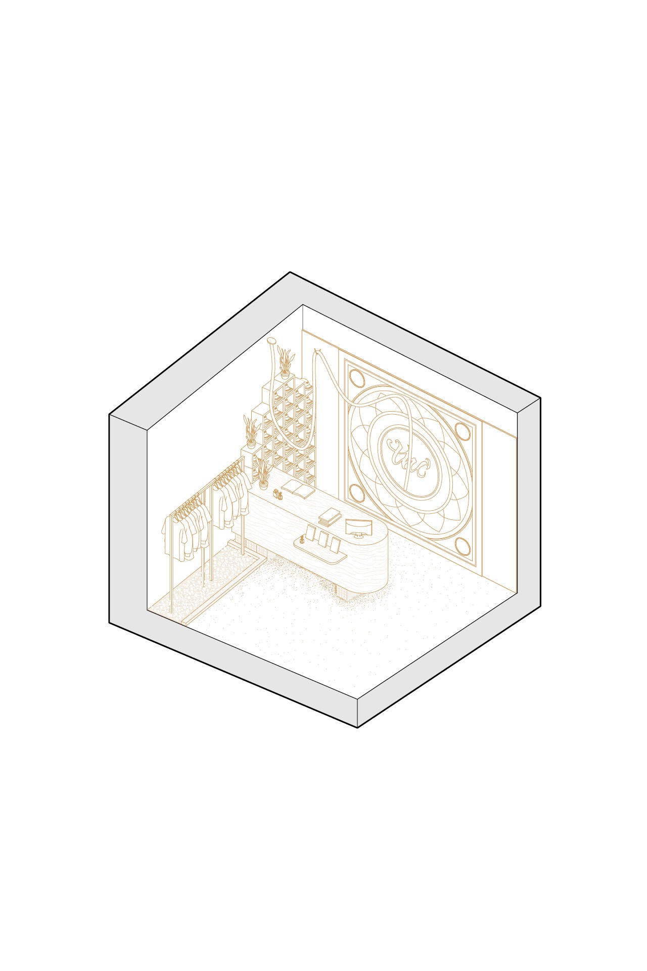Profitant de la configuration atypique du local, le flagship store THC est conçu comme l’exposition d’une œuvre complète en trois temps qui revisite la manière de présenter une collection. « L’Annexe », « La Boutique » et « Le Showroom » mettent à l’honneur la production du créateur, faisant du réemploi des collections passées le décor des collections à venir.