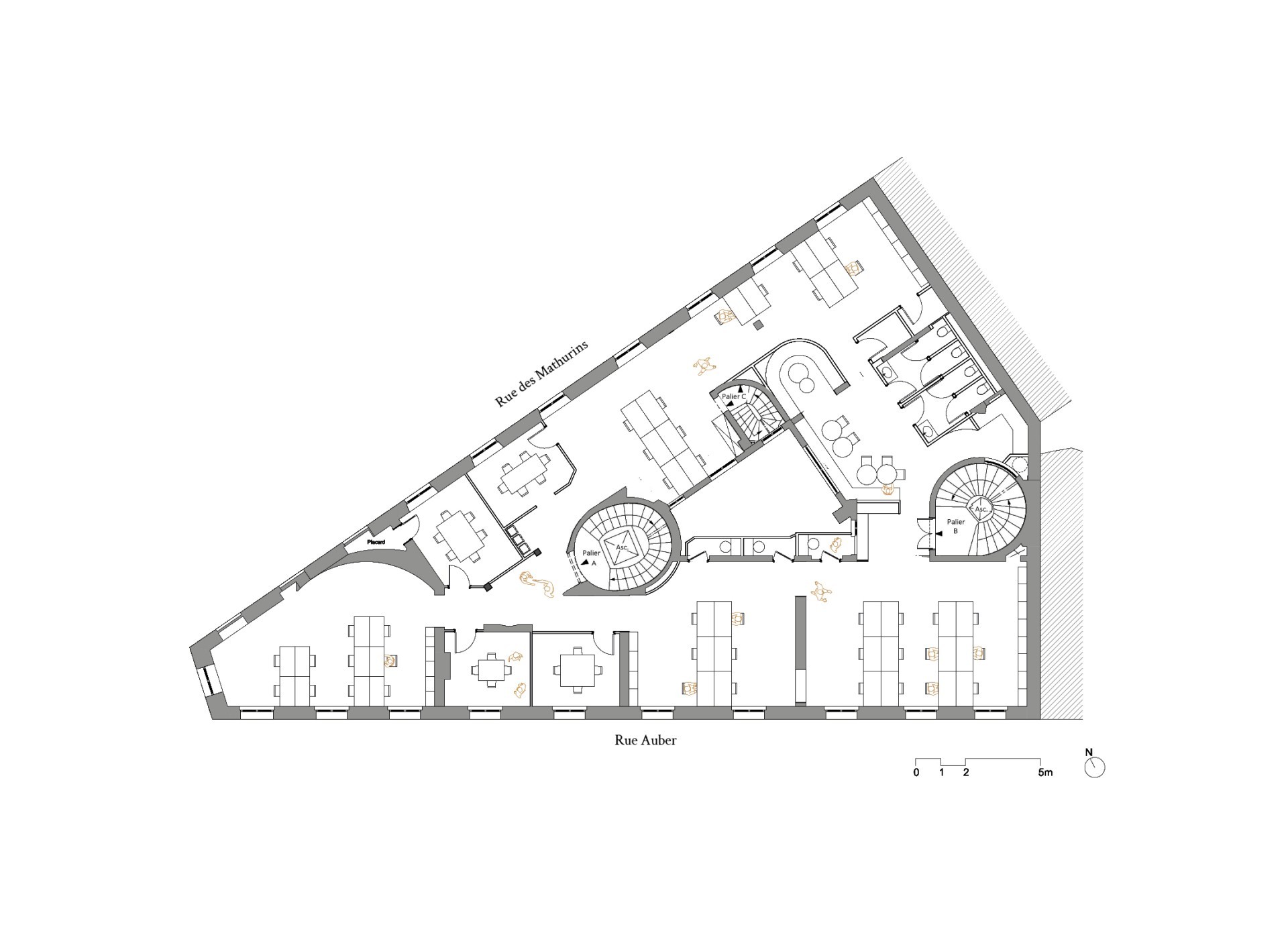 L’objectif principal de cette réhabilitation est de réunir différents lots pour améliorer la flexibilité et l’attractivité des espaces de travail tout en garantissant une cohérence architecturale. En optimisant les espaces par décloisonnement et en repensant les circulations, le projet permet l’augmentation de la capacité d’accueil tout en assurant un cadre de travail confortable et contemporain. Favorisant la lumière naturelle et une circulation fluide, le projet conserve les éléments d’origine qui font la spécificité et le charme de l’immeuble haussmannien.
